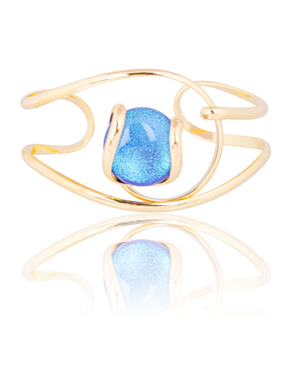 Au centre, un cristal Swarovski® taille allongée dévoile une teinte vert laguna aux reflets irisés. Selon la lumière, la pierre révèle des nuances turquoise et aquatiques, offrant profondeur et intensité au poignet.