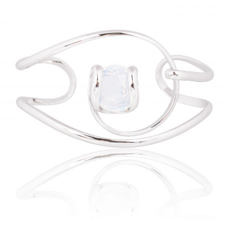 Au centre, un cristal Swarovski® taille coussin dévoile une teinte blanc opalescent aux reflets subtils et nacrés. Selon la lumière, la pierre révèle de délicates nuances irisées, apportant douceur et éclat naturel au poignet.