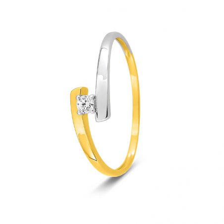 Bague solitaire pas cher toi et moi bicolore or 9 carats