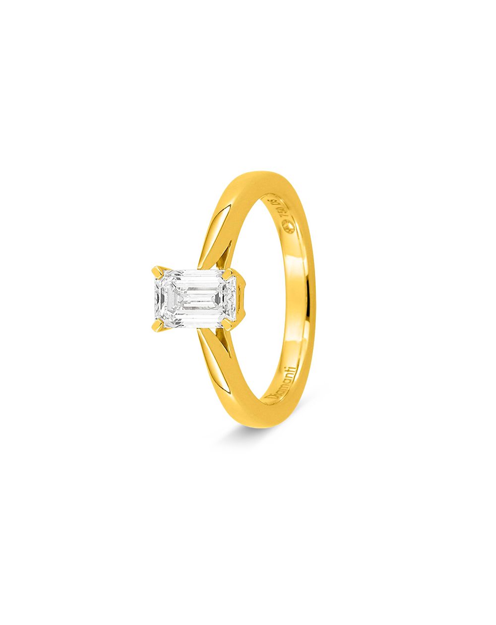 Bague solitaire diamant de laboratoire taille émeraude 0,70 ct – Or jaune 18 carats F-VS certifié