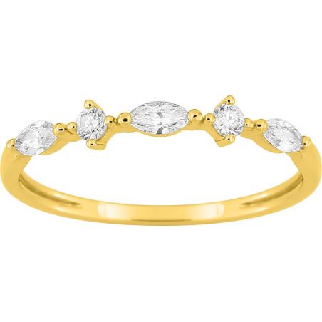 Délicate et résolument élégante, cette bague en or jaune 9 carats (375‰) est ornée de diamants de laboratoire pour un poids total de 0,26 carat. Disposées harmonieusement, les pierres apportent une brillance subtile et raffinée, idéale pour un bijou du quotidien à l’allure précieuse mais discrète.