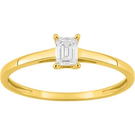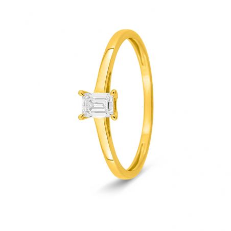 Bague solitaire diamant de laboratoire taille émeraude 0,25 ct – Or jaune 9 carats (375‰) F-VS