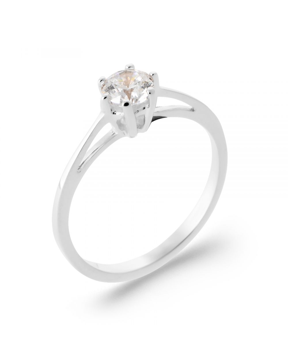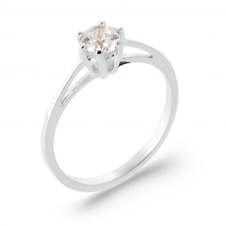 Bague solitaire argent 925 rhodié 5 mm – bague de fiançailles classique zirconium femme