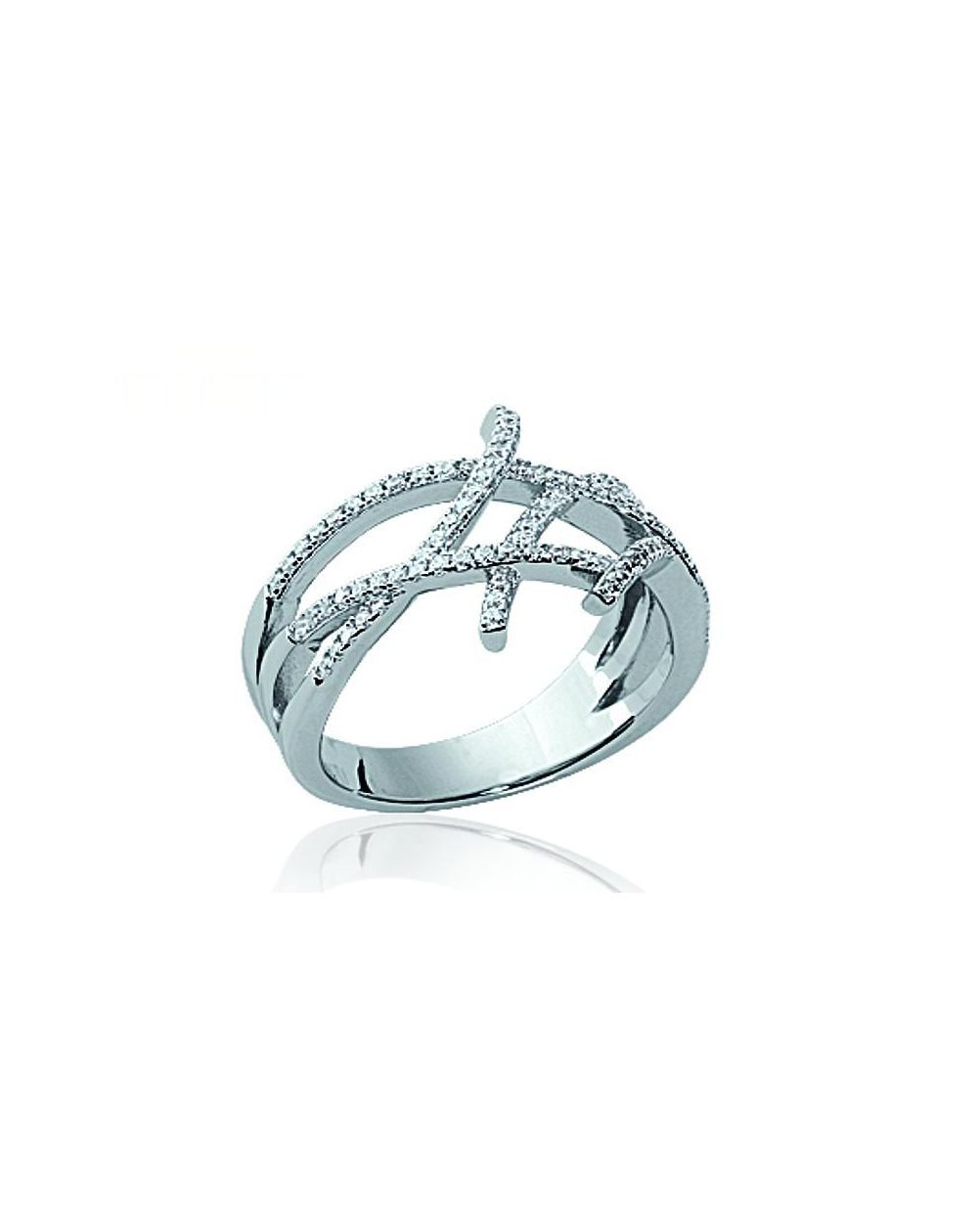 Bague déstructurée argent 925 rhodié zirconium microserti