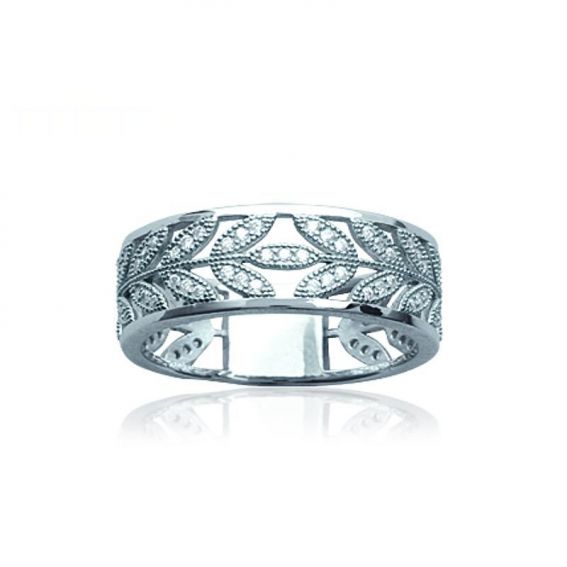 Bague grandes feuilles empierrées argent 925 rhodié zirconium