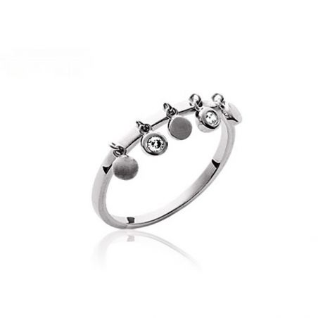 Bague pastilles en breloque argent 925 rhodié zirconium