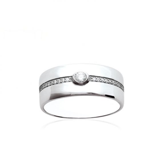 Bague solitaire avec pierres argent 925 rhodié zirconium