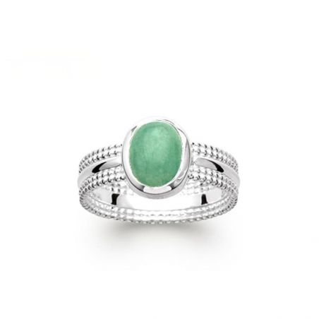 Cette bague en argent 925/1000 rhodié, dispose d'une pierre centrale de couleur verte appelée Aventurine.