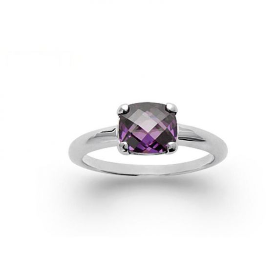 Bague pierre rectangulaire mauve argent 925 rhodié zirconium