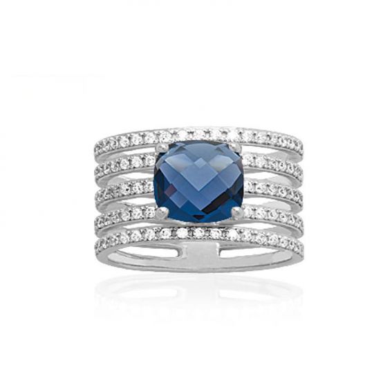 Bague argent 925 rhodié zirconium pierre bleu marine