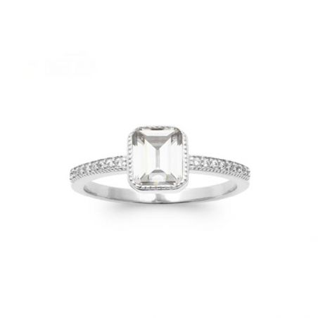 Bague rectangle avec pierres argent 925 rhodié zirconium