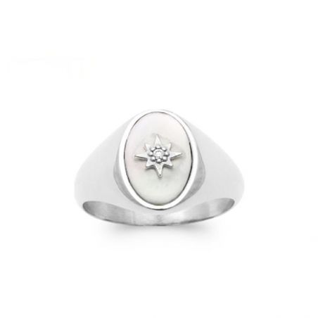 Bague chevalière nacre argent 925 rhodié zirconium