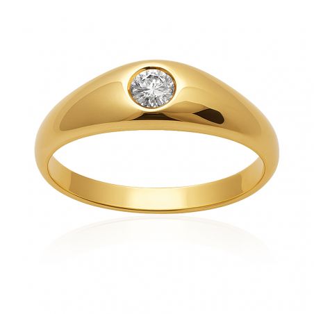 Bague petite chevalière empierrée plaqué or 18k zirconium