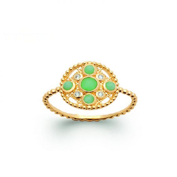 Cette bague en plaqué or est l'accessoire de mode idéal pour toutes les femmes soucieuses de leur élégance et de leur style. Avec sa finition dorée et ses pierres semi-précieuses, elle apportera une touche de sophistication à votre tenue. Vous pouvez même choisir la taille de cette bague pour qu'elle s'adapte parfaitement à votre doigt. Fabriquée avec des matériaux de qualité, cette bague vous accompagnera dans toutes vos occasions spéciales. Marquez votre féminité en portant cette bague qui sera sans aucun doute la pièce maîtresse de vos bijoux.