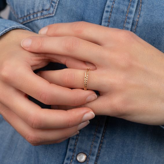 Bague double anneau 2mm plaqué or 18k