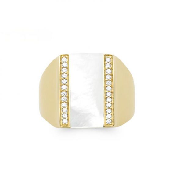 Bague chevalière rectangulaire plaqué or 18k nacre zirconium