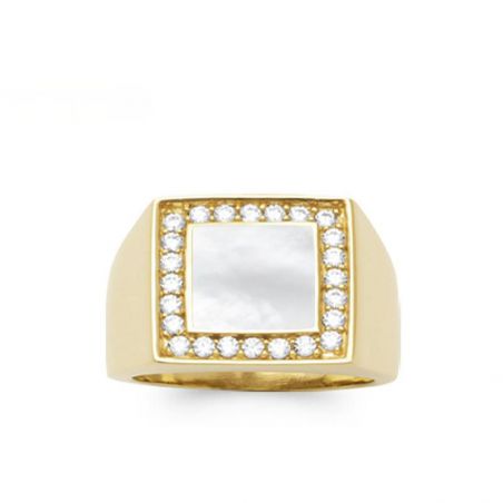 Bague chevalière carré plaqué or 18k nacre zirconium