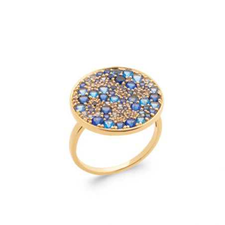 Bague pavé rond empierré bleuté plaqué or 18k