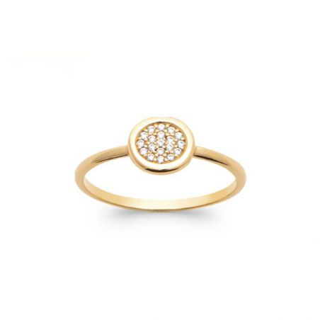 Bague pastille close pavé de pierres plaqué or 18k zirconium