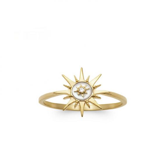 Bague croissant lune blanc plaqué or 18k nacre zirconium