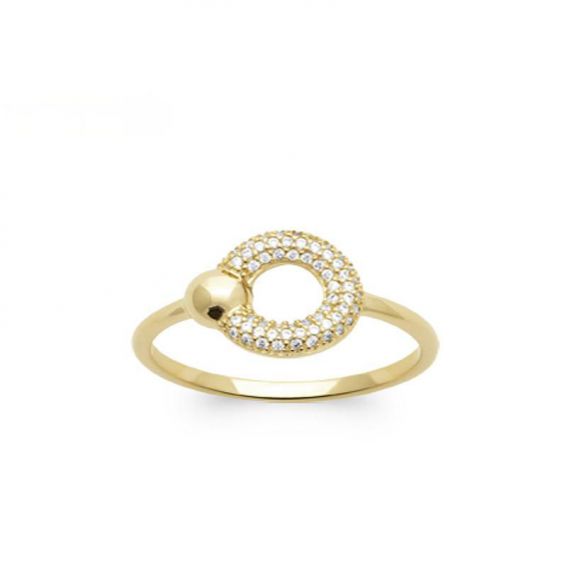 Bague disque et boule plaqué or 18k zirconium
