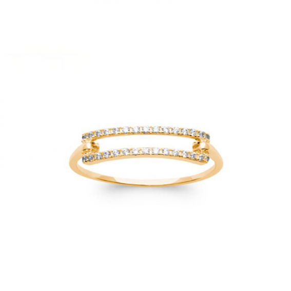 Bague double rails de pierres plaqué or 18k zirconium
