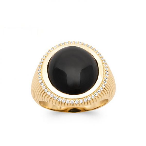 Bague plaqué or 18k agate noire