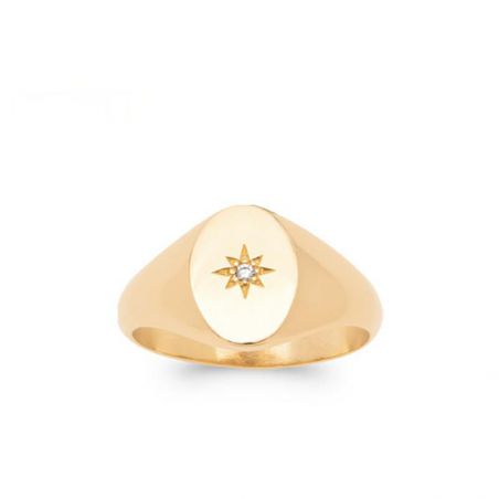 Bague chevalière ovale avec pierre étoile plaqué or 18k zirconium