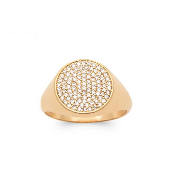 Bague chevalière pavé rond de pierres plaqué or 18k zirconium