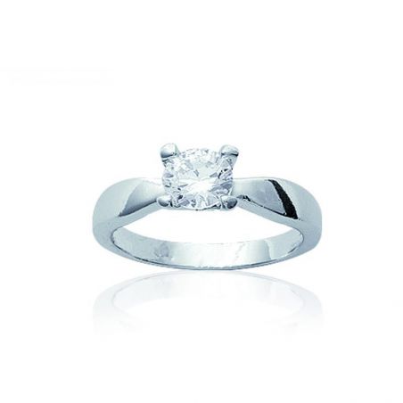Bague solitaire 4 griffes argent 925 rhodié zirconium