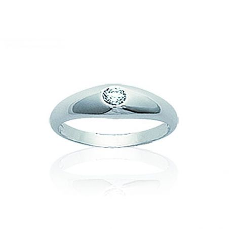 Bague fine chevalière avec pierre argent 925 rhodié zirconium