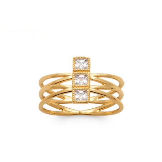 Bague solitaire triple entrecroisé carré plaqué or 18k zirconium