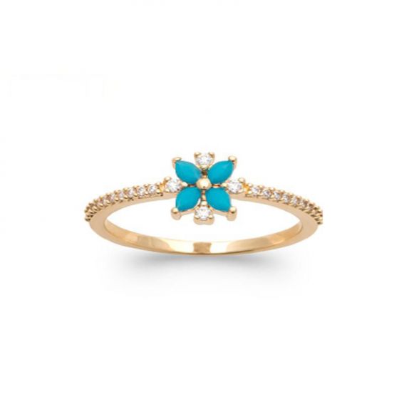 Bague étoile turquoise plaqué or 18k zirconium ps