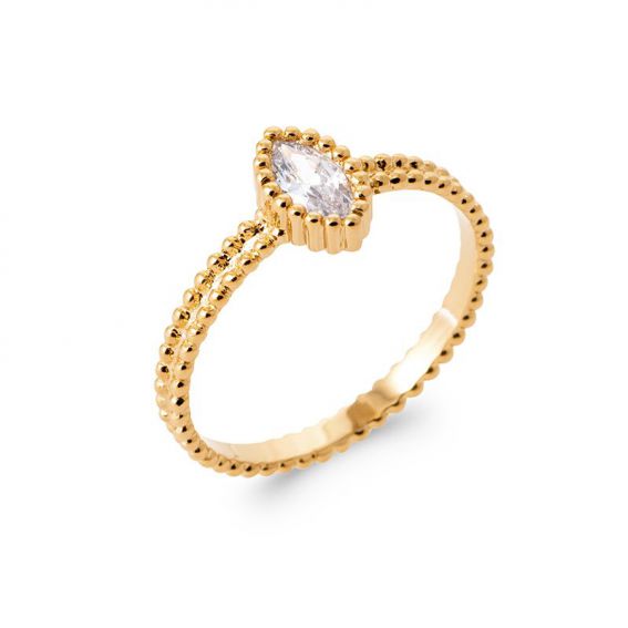 Bague solitaire amande plaqué or 18k zirconium