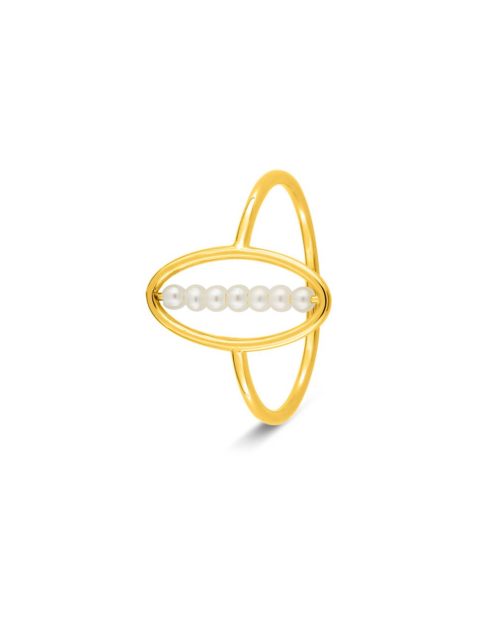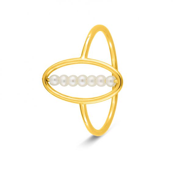 Cette bague en or jaune 9 carats est une bague dotée de plusieurs perles de culture. Celle-ci peut être gravée à l'intérieur.