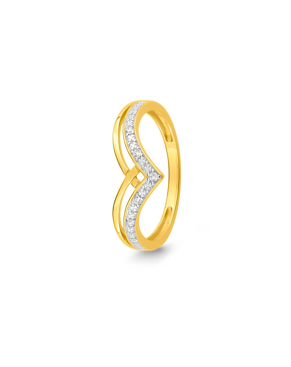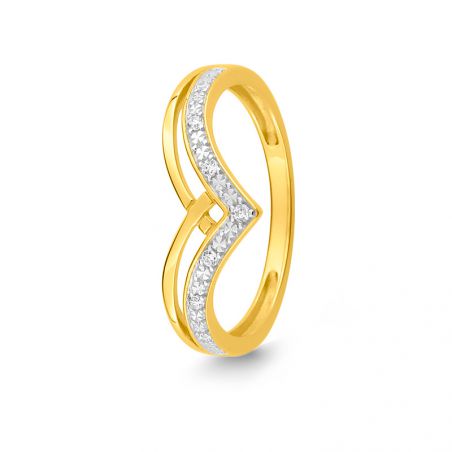 Cette bague en or jaune 9 carats est une bague en forme de pointe serti de diamants de 0,05 carats GH P3. Celle-ci peut être gravée à l'intérieur.