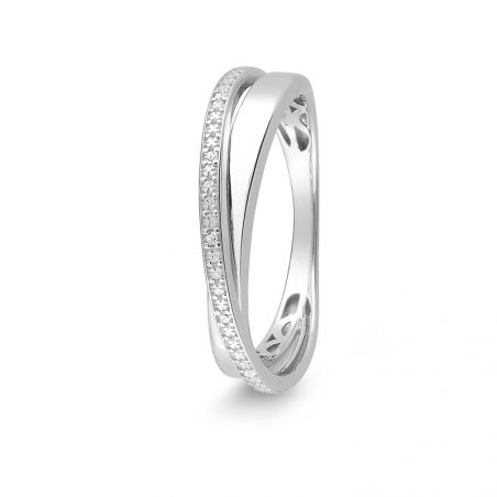 Cette bague en or bicolore 9 carats est une bague double de diamants de 0,02 carats GH P2/P3. Celle-ci peut être gravée à l'intérieur.