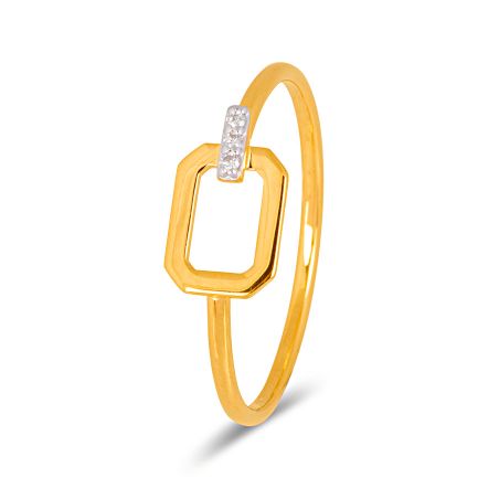 Cette bague en or jaune 9 carats est une bague formée d'un rectangle dont une partie est empierrée de diamants de 0,02 carats GH-P2. Le rectangle mesure 8mm de long sur 6mm de large.