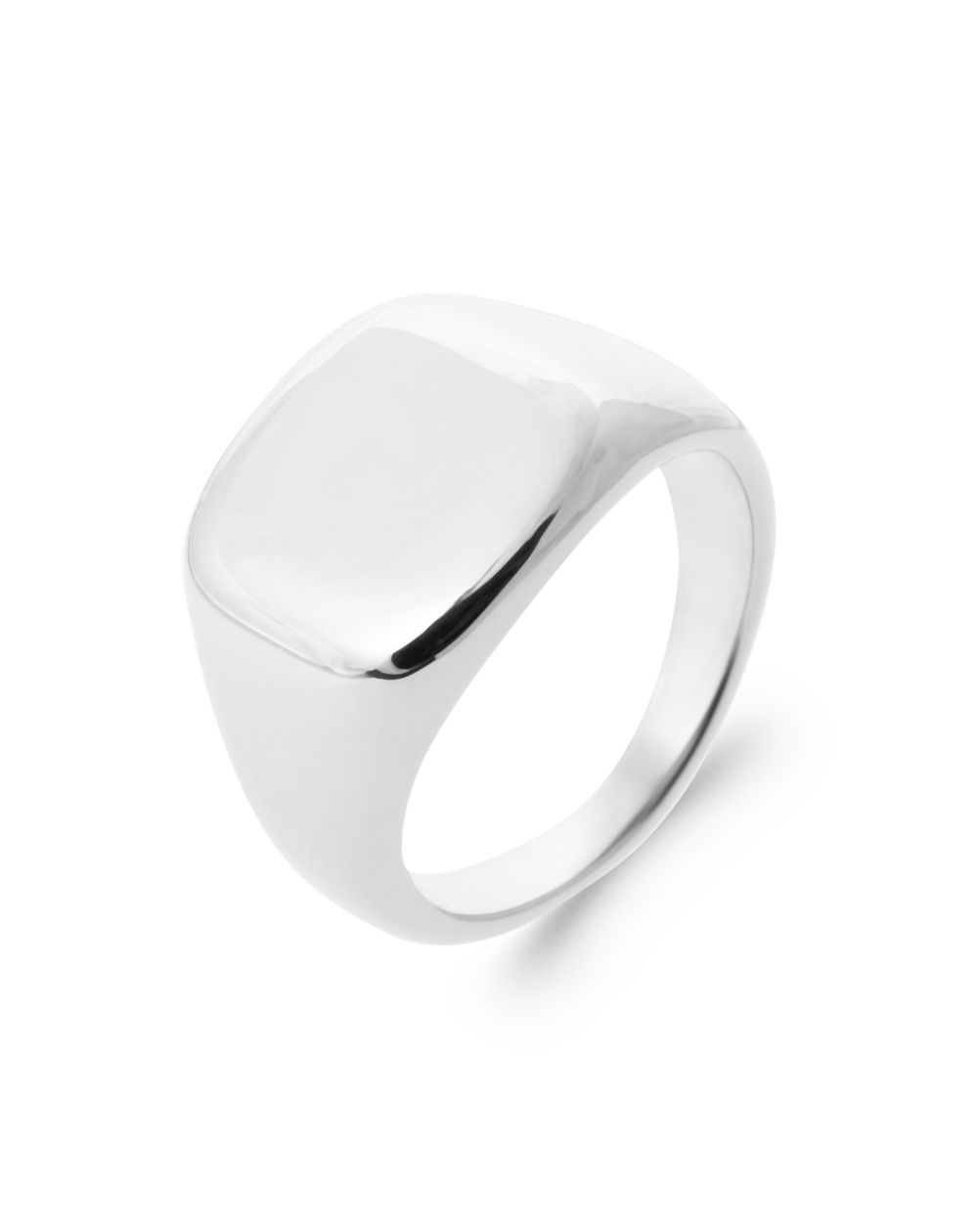 Cette bague en argent massif présente un design moderne et audacieux avec une large bande et un sommet arrondi et large qui couvre une bonne partie du doigt. Son aspect poli et lisse reflète la lumière, ce qui lui donne une présence éclatante et un style contemporain.