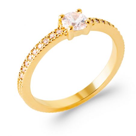 Cette élégante bague plaquée or présente un design unique en maillons, agrémentée de zirconiums blancs brillants disposés de manière délicate sur certains maillons. Le mélange du placage or et des zirconiums offre une allure sophistiquée et moderne. Cette bague, avec son motif de chaîne élégante, est parfaite pour ajouter une touche de glamour subtil à toute tenue, qu'elle soit portée seule ou empilée avec d'autres anneaux.