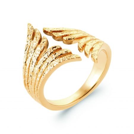 Cette magnifique bague en plaqué or 18 carats est une véritable œuvre d'art. Son design unique, évoquant des ailes délicatement texturées, capture l'essence de l'élégance et de la sophistication. Chaque détail finement martelé ajoute une dimension artisanale, faisant de cette bague un accessoire incontournable. Sa forme ouverte, avec des extrémités se rejoignant subtilement, crée un effet visuel saisissant. Parfaite pour ajouter une touche de glamour à votre tenue quotidienne ou pour sublimer une tenue de soirée, cette bague est un must-have pour toute garde-robe élégante.
