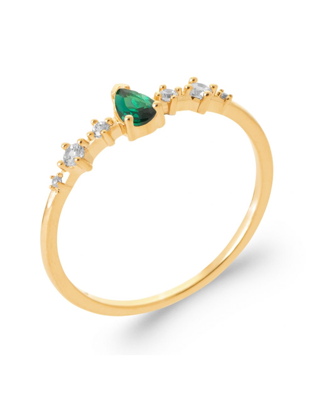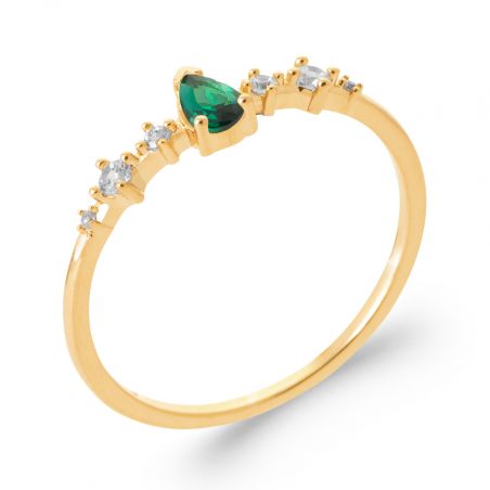 Bague marquise pierre émeraude plaqué or
