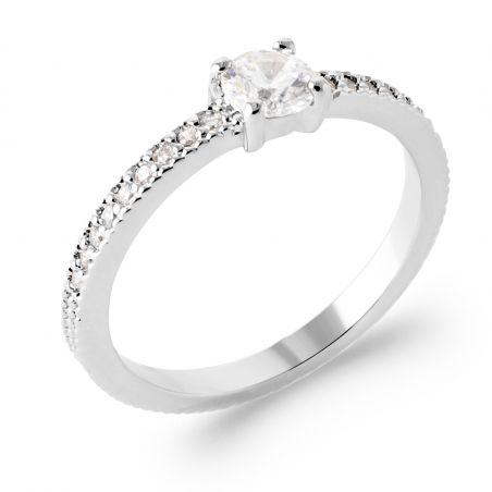 Laissez-vous séduire par l’éclat raffiné de la bague Alicante. Confectionnée en argent 925 rhodié, elle se distingue par sa pierre centrale façon solitaire sertie de quatre griffes, sublimée par une rangée d’oxydes de zirconium scintillants sur l’anneau.