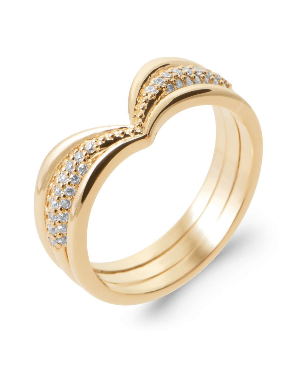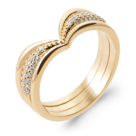 Bague V empierrée plaqué or