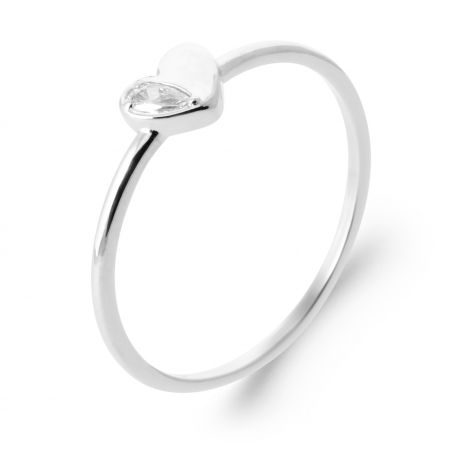 Succombez au charme délicat de cette bague coeur en argent 925 rhodié, à la fois moderne et romantique. Son cœur graphique se distingue par un design original : une moitié lisse, l’autre sertie d’un oxyde de zirconium scintillant. Une création raffinée qui allie éclat et sobriété.