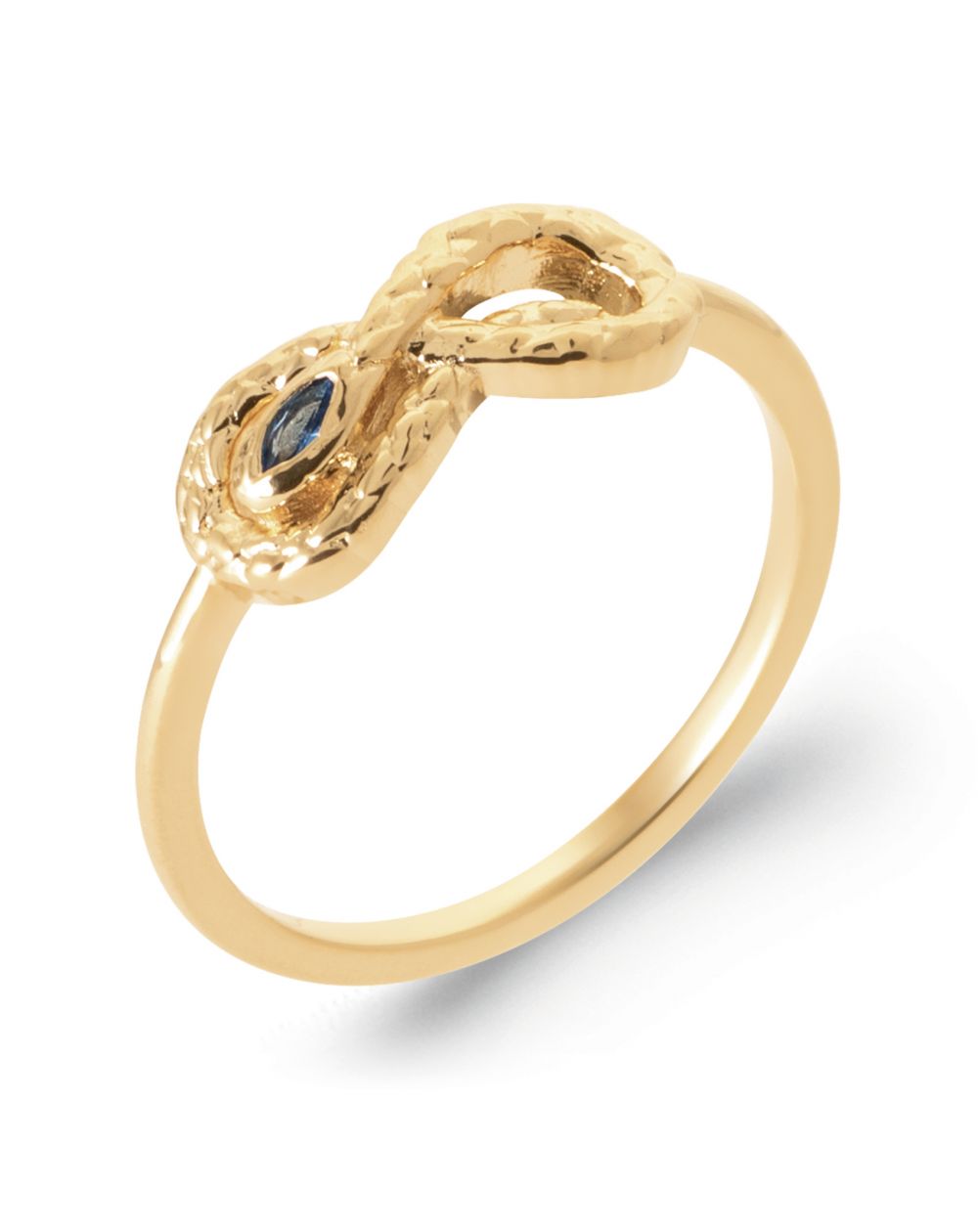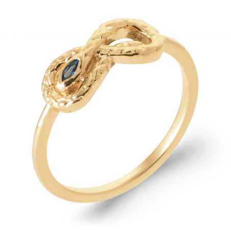 Laissez-vous séduire par le design audacieux de cette bague infini snake en plaqué or 18k. Le serpent, symbole d’éternité et de renouveau, se love en un élégant motif infini serti d’un zircon bleu éclatant.