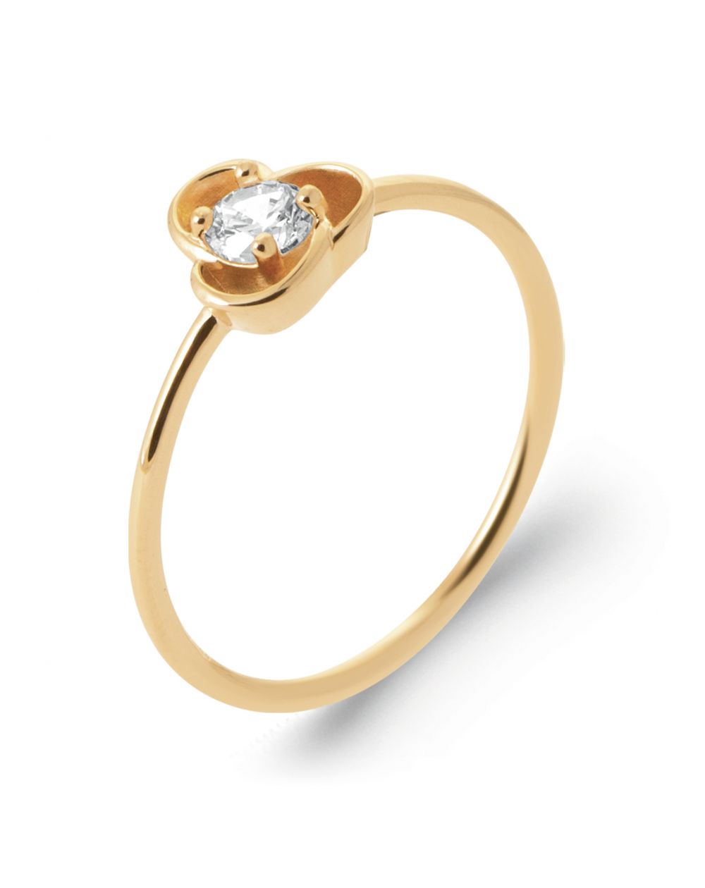 Laissez-vous séduire par la délicatesse de cette bague fleur, finement réalisée en plaqué or 18 carats. Son motif ajouré en forme de fleur entoure un zirconium blanc étincelant, pour un effet lumineux et raffiné.