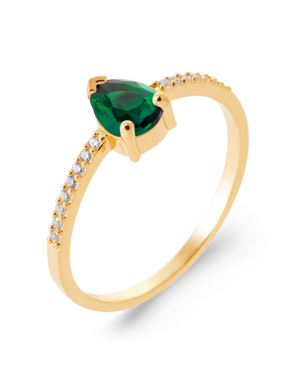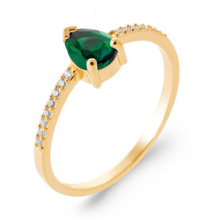 Laissez-vous séduire par l’élégance intemporelle de cette bague en plaqué or 18 carats. En son centre trône une somptueuse pierre en forme de goutte, d’un vert profond façon émeraude, montée sur un anneau délicatement serti de zirconiums scintillants.