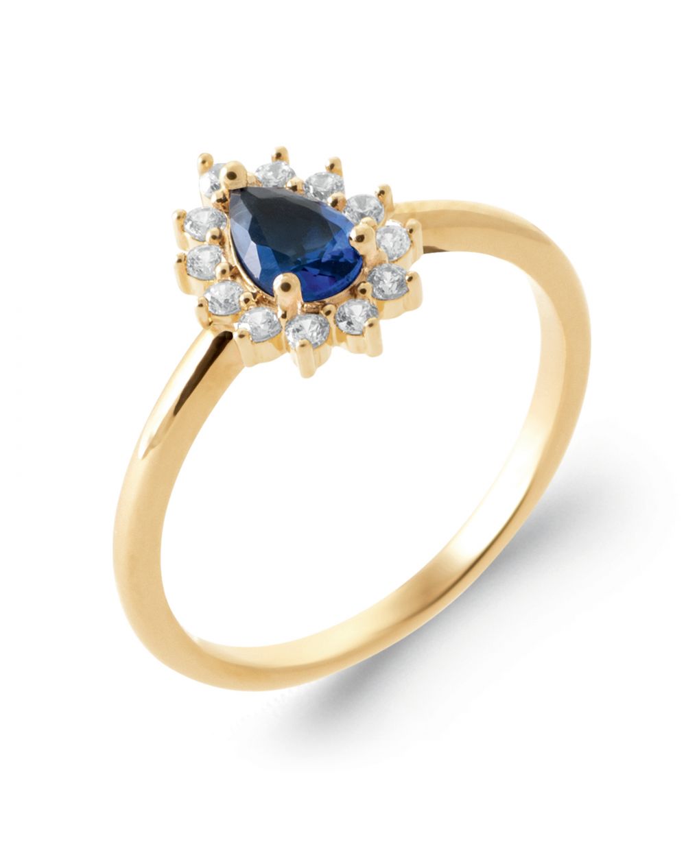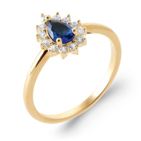 Bague goutte bleu saphir plaqué or 18k