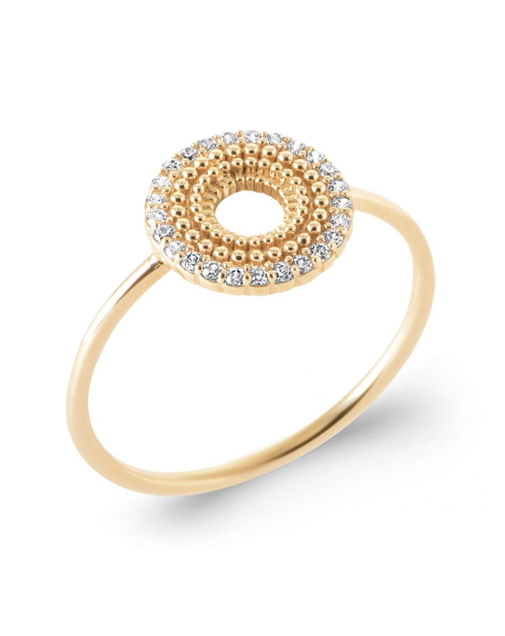 À la fois tendance et intemporelle, la bague Vortex se porte seule pour un look épuré ou associée à d’autres bagues dorées pour un effet plus audacieux.